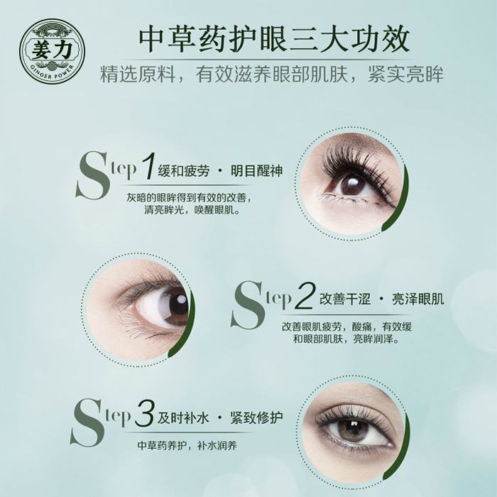 天然冰片专利,可以促进眼部肌肤微循环,明眸醒神,增强眼周舒适与洁净。Haloxyl祛黑因子专利,渗透修护,有效缓解眼部黑眼圈,提拉紧致眼部肌肤,减少眼部细纹。七重植萃专利(积雪草提取物、黄岑提取物、虎杖根提取物、光果甘草根提取物、茶叶提取物、迷迭香叶提取物、母菊花提取物)草本配方,植物润养,缓解眼部疲劳,改善眼肌暗沉、眼睛干涩状态。透明质酸钠成分,为眼睛锁住水分,令眼部肌肤水润有光泽。