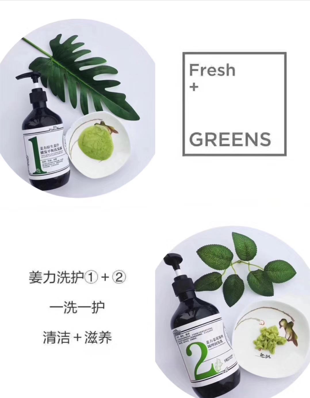 姜力一号原生姜汁健发平衡洗发露和姜力二号姜花发丝调理润发乳可以用在日常护理。主要成分为:生姜提取物(姜稀酮、姜酚、姜醇、姜酮)、何首乌提取物、当归提取物、三七提取物、山茶籽提取物。洗发乳会多透明质酸和天然核桃壳按摩颗粒成分。