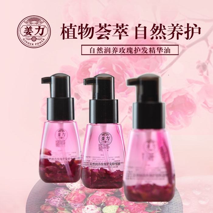 姜力深层润养玫瑰护发精华油。主要成分有玫瑰花瓣、越桔籽油、向日葵籽油、葡萄籽油、霍霍巴籽油、迷迭香叶提取物等。主要功效:抚平毛糙、深度滋养、强韧发丝、水润亮泽。越桔籽油成分,迅速进入发芯深处,由内而外滋养受损发质。植萃养护(霍霍巴籽油、葡萄籽油、向日葵籽油、迷迭香叶提取物)精萃分成,促进毛鳞片生长,滋养开叉发尾,抚平毛糙,秀发柔顺有亮泽。滴滴精萃,在秀发表层形成保护层,抵御外界侵害,直发更直,卷发更卷。天然玫瑰花瓣成分,一抹芳香。